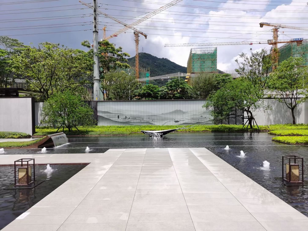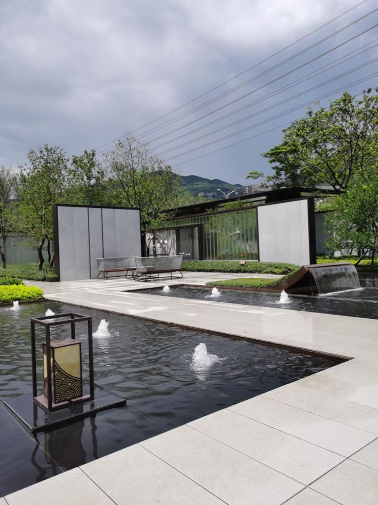 協(xié)進(jìn)厚磚工程案例:安溪中駿·御璟府 項(xiàng)目采用中式園林風(fēng)格設(shè)計(jì),使用芝麻灰、芝麻黑產(chǎn)品搭配鋪貼。 效果古典又不缺現(xiàn)代感,大氣有不失唯美。